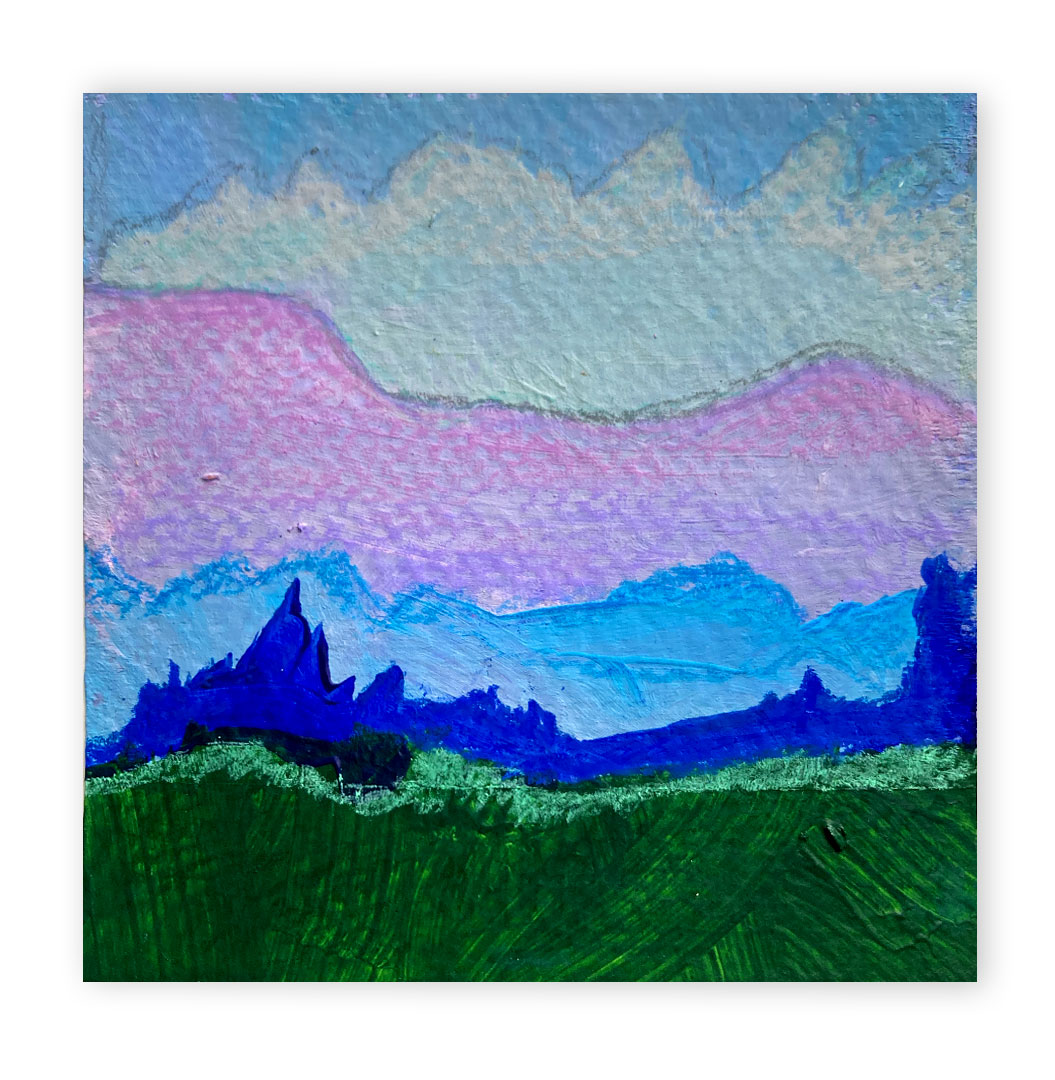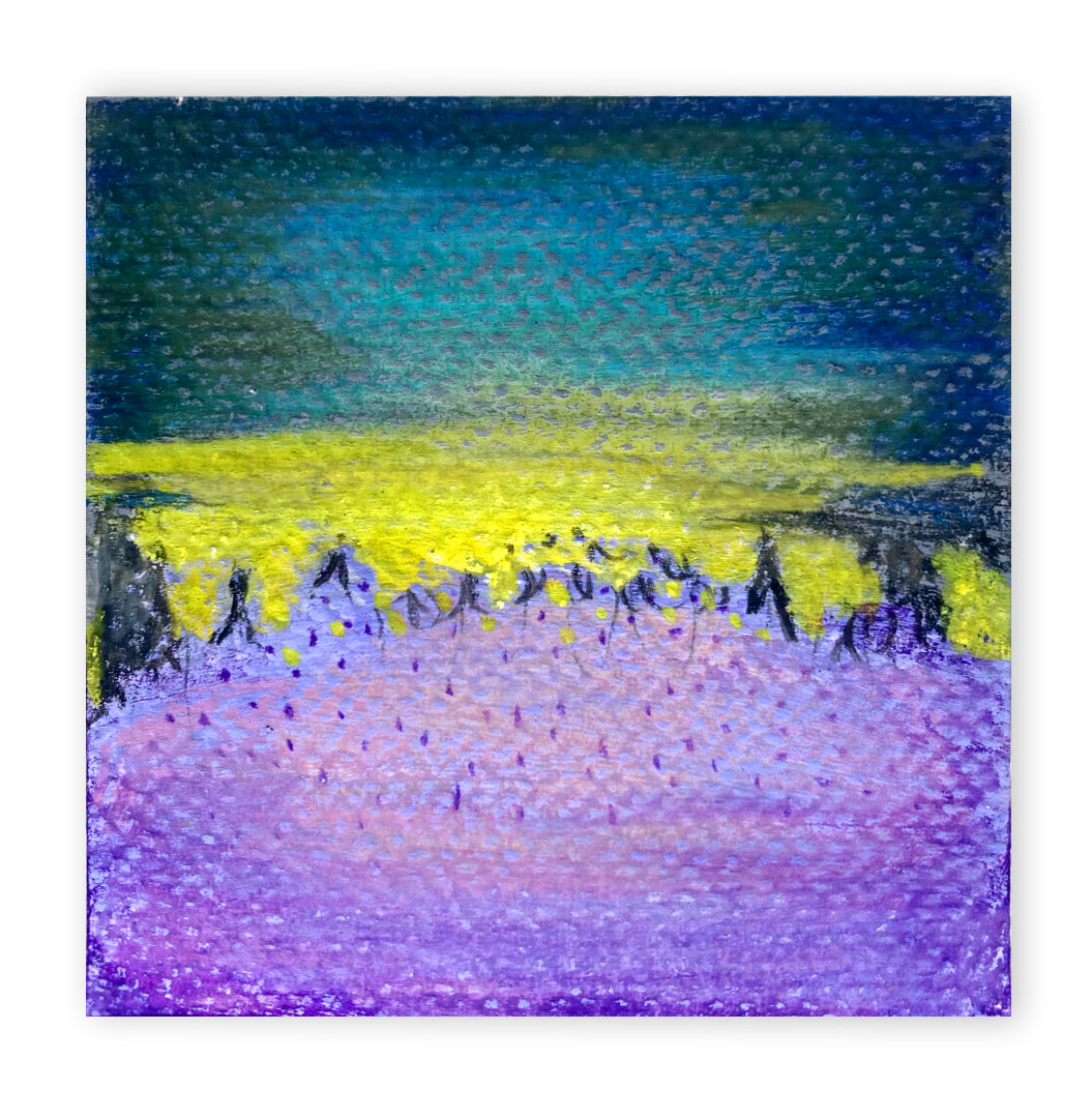 Je crée une petite oeuvre par jour, les formats carrés varient entre 3 et 8 pouces.