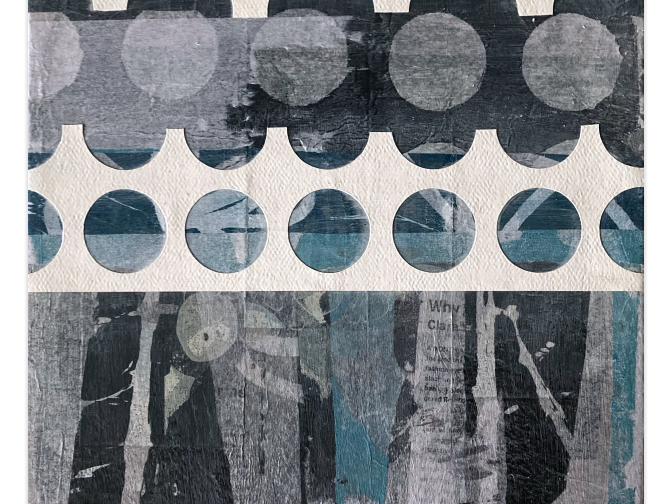 Réalisées en médiums mixtes à partir de monotypes et découpes papier marouflés sur toile, panneau de bois ou sur papier.