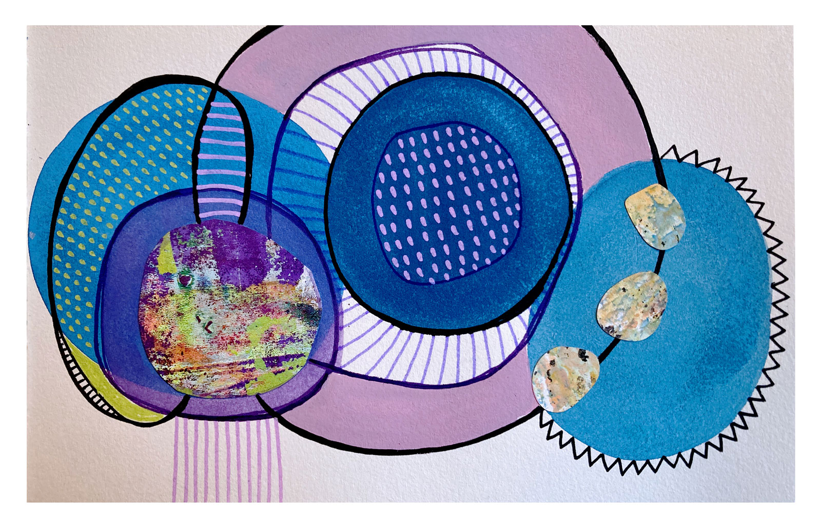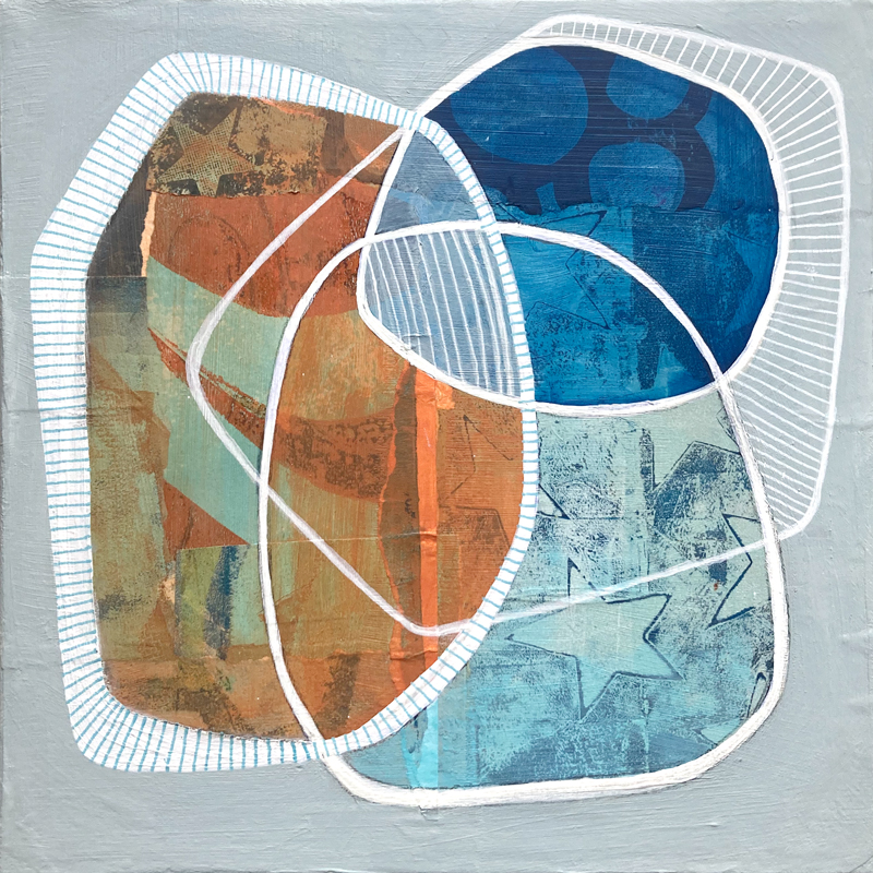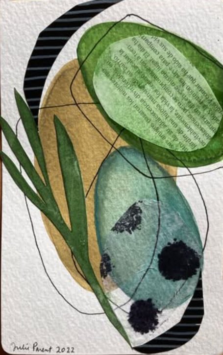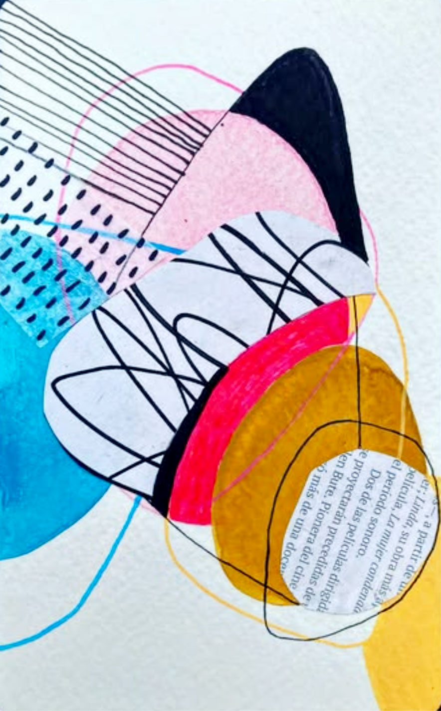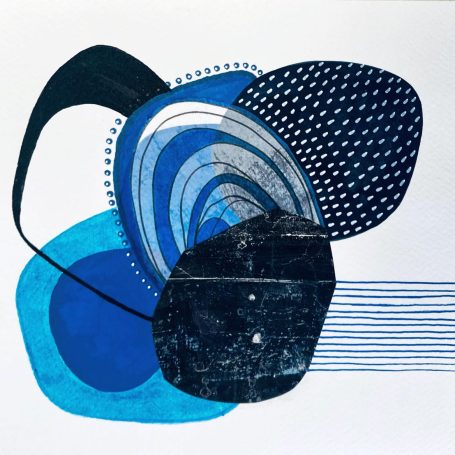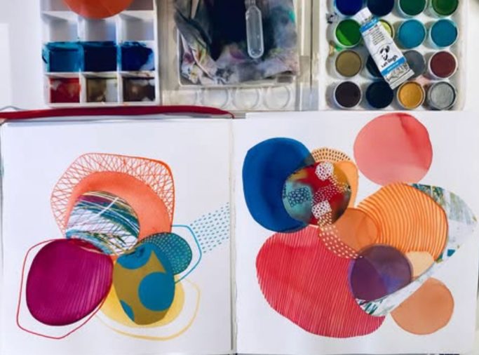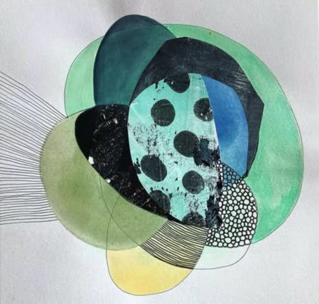 Série d’oeuvres abstraites et graphiques qui incluent peinture acrylique ou aquarelle et collage de monotypes