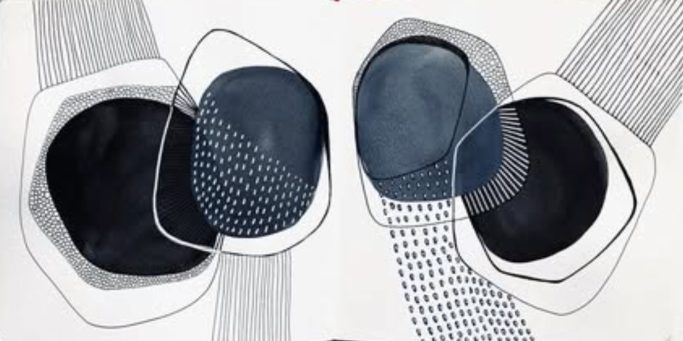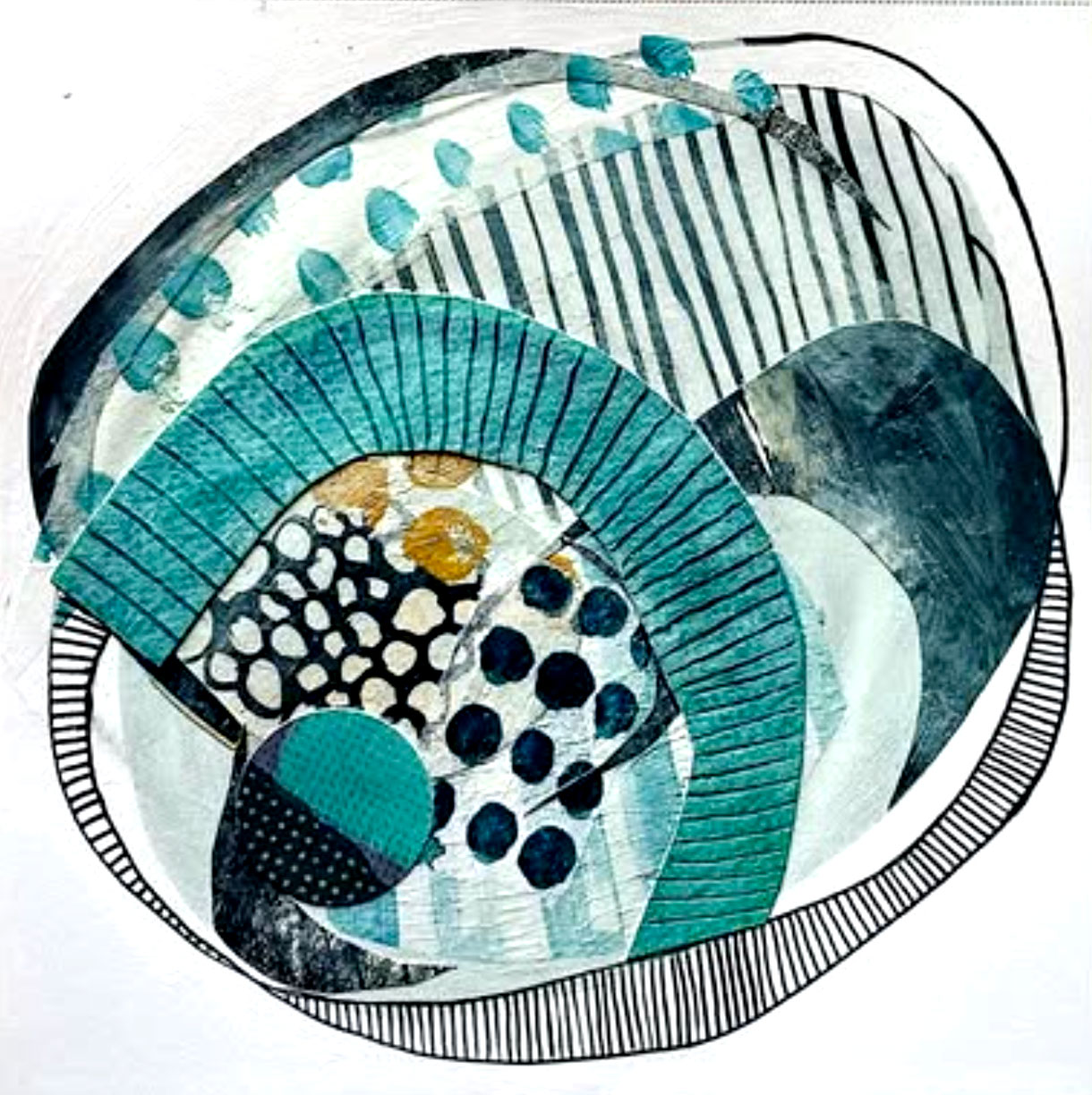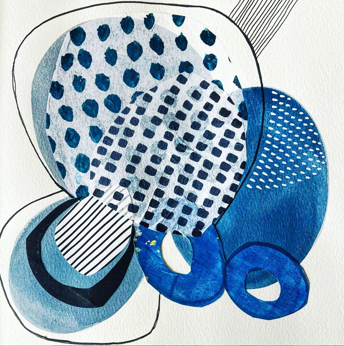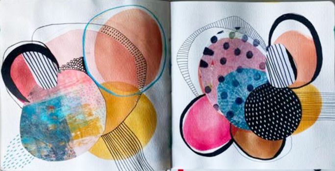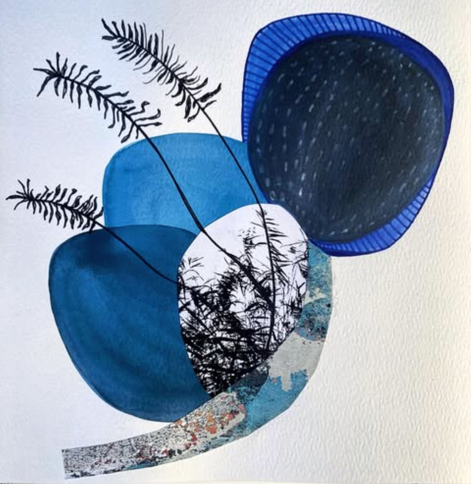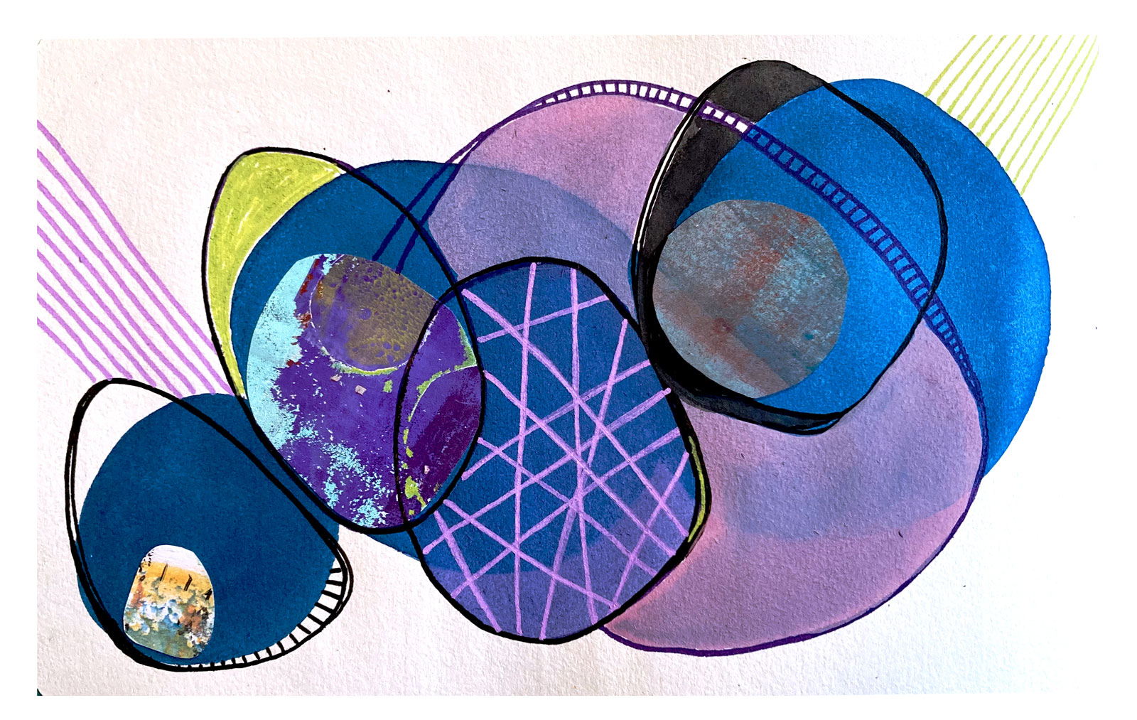 Série d’oeuvres abstraites et graphiques qui incluent peinture acrylique ou aquarelle et collage de monotypes