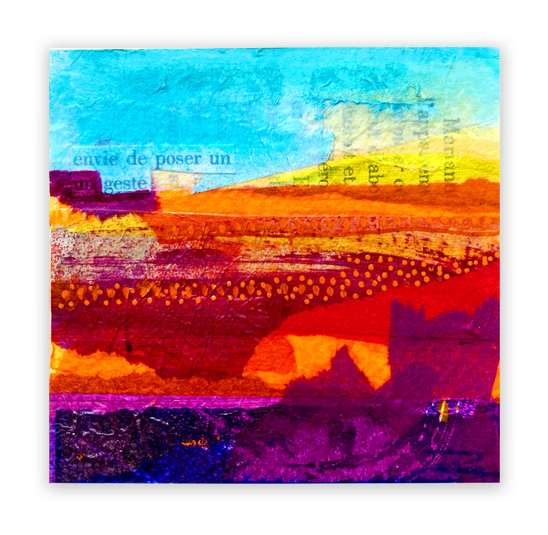 18 petites oeuvres 3,5 x 3,5 pouces sur papier carton réalisées en mixmédia incluant peinture acrylique, aquarelle, collage marquage et monotypes - disponibles pour la vente au coût de 25$ incluant la livraison au fur et à mesure qu’elles apparaissent ici. Cliquez sur l’image pour voir le lien dans ma boutique.